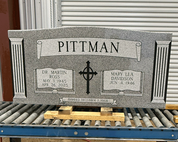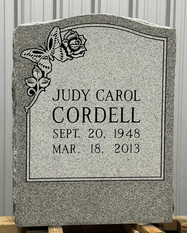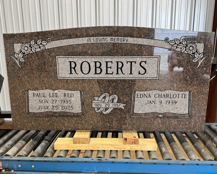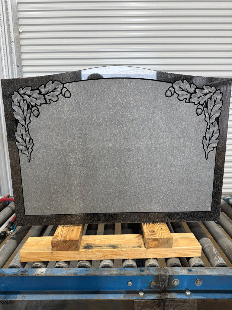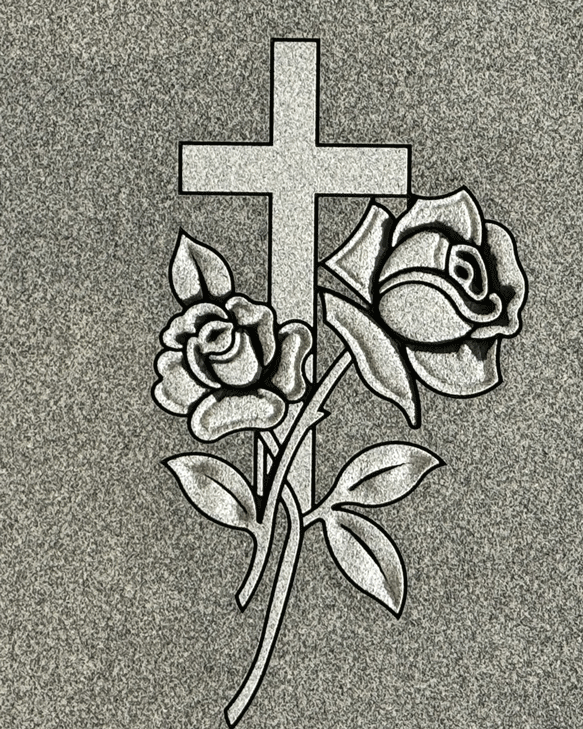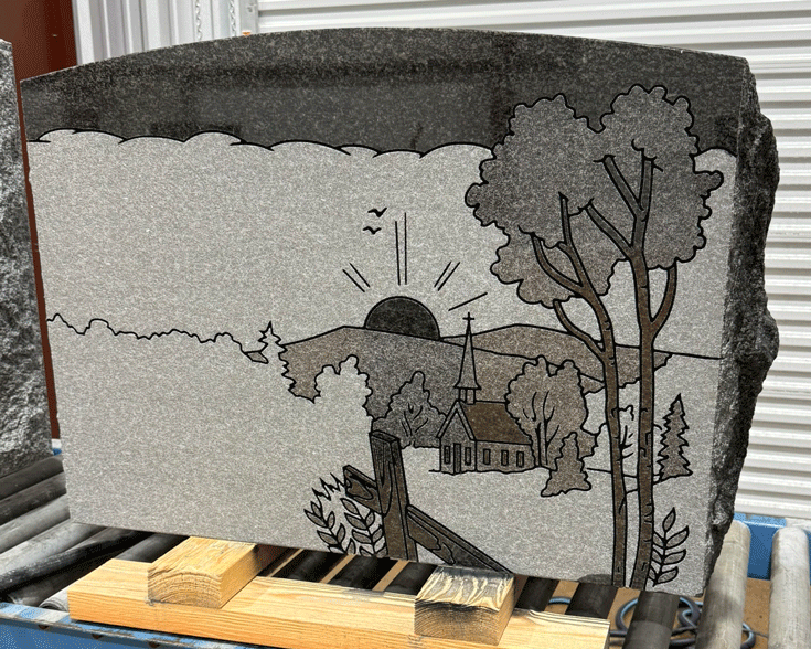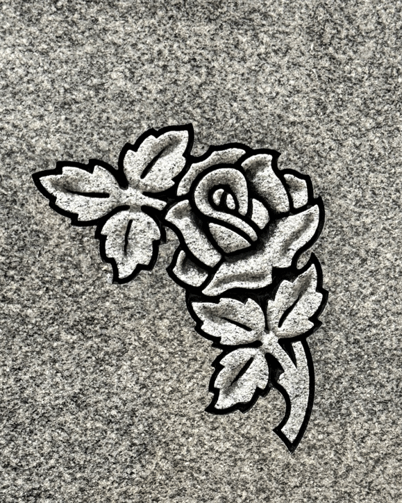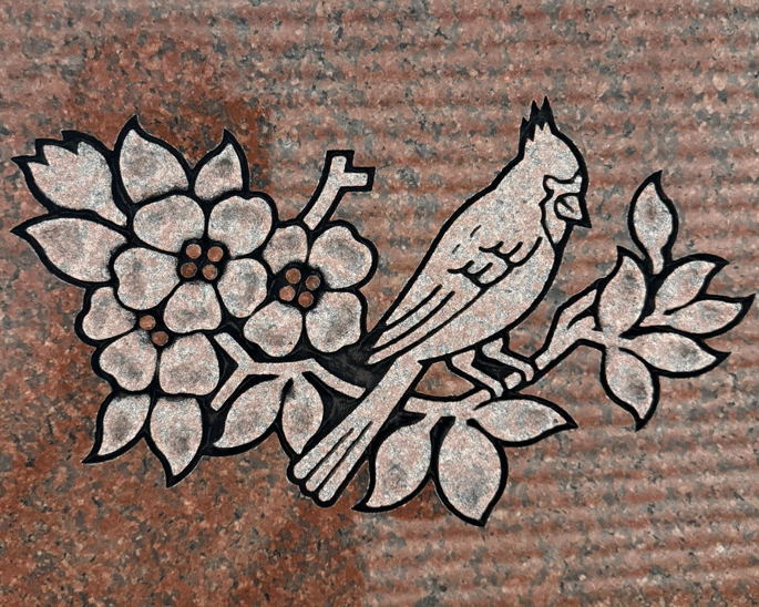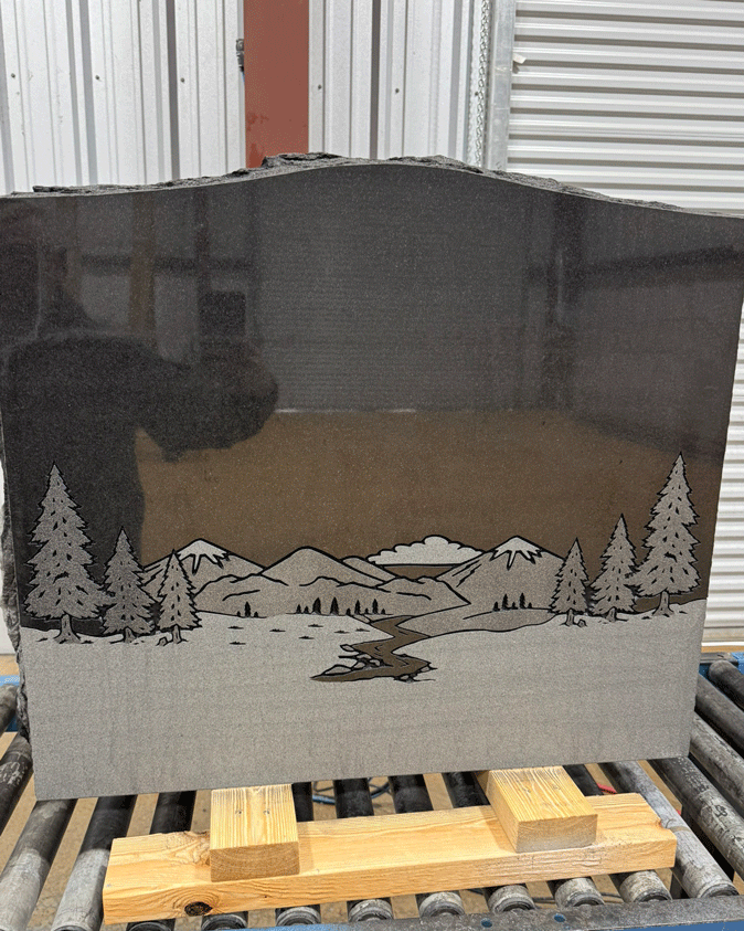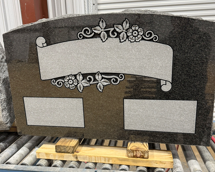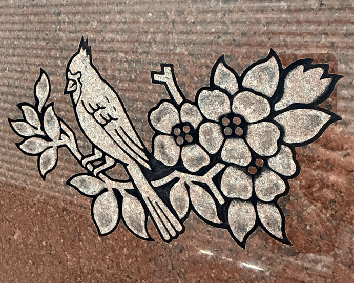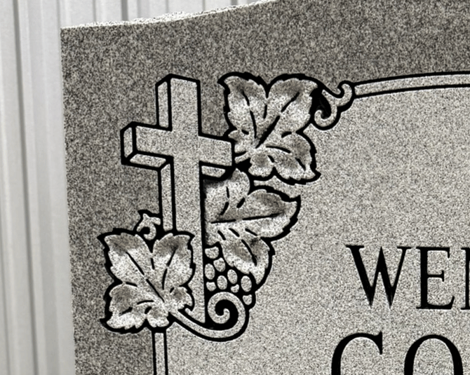 We digitally remove personally identifying information on most of the images we post to preserve the privacy of the families. We leave enough of the finished sandblasting to give a good representation of our work. In some cases, we'll leave a common family name in the image, since it won't personally identify the family.